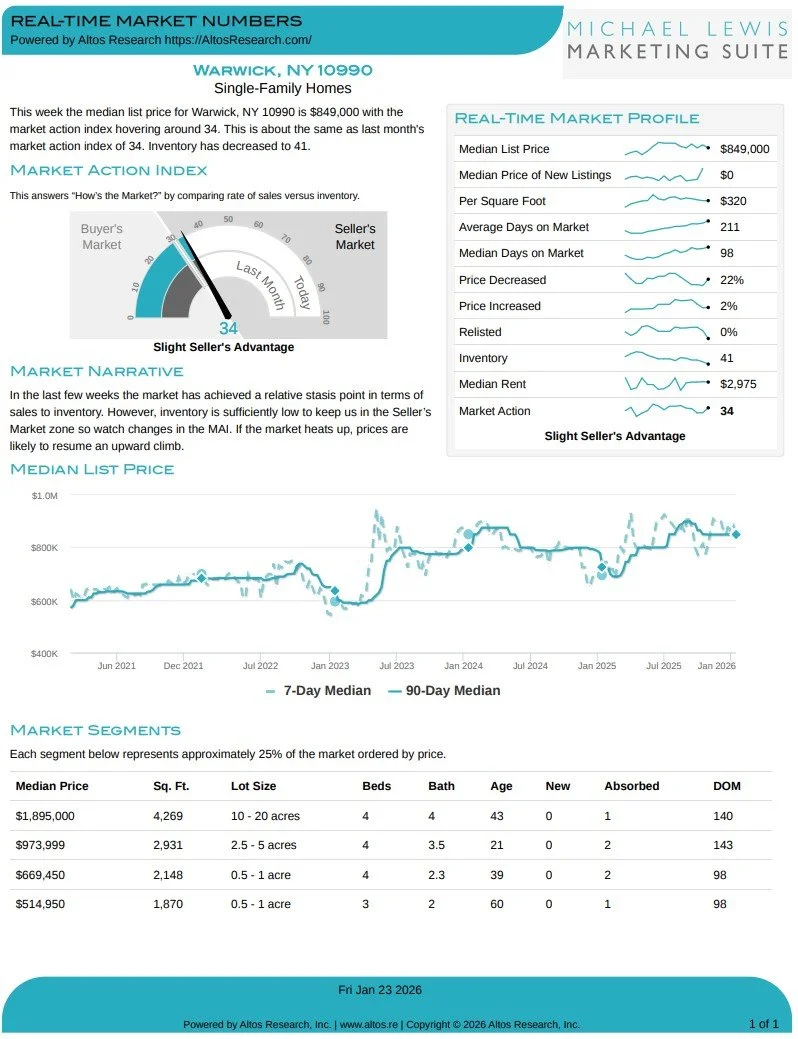 Interactive image below (glide your mouse along it!) shows the median home prices in Orange, Sullivan & Ulster Counties. Each data point averages 3 months of activity. Scroll down to see weekly stats for selected zip codes in Orange County NY.